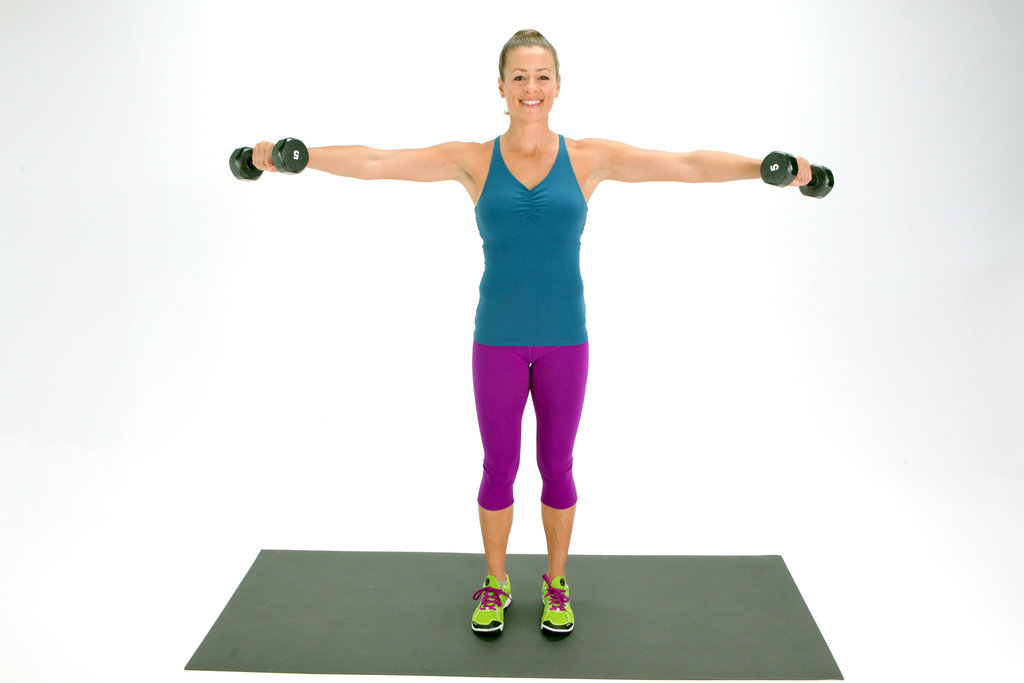 You’ll work your glutes, outer thighs, and lateral deltoids with these two moves.